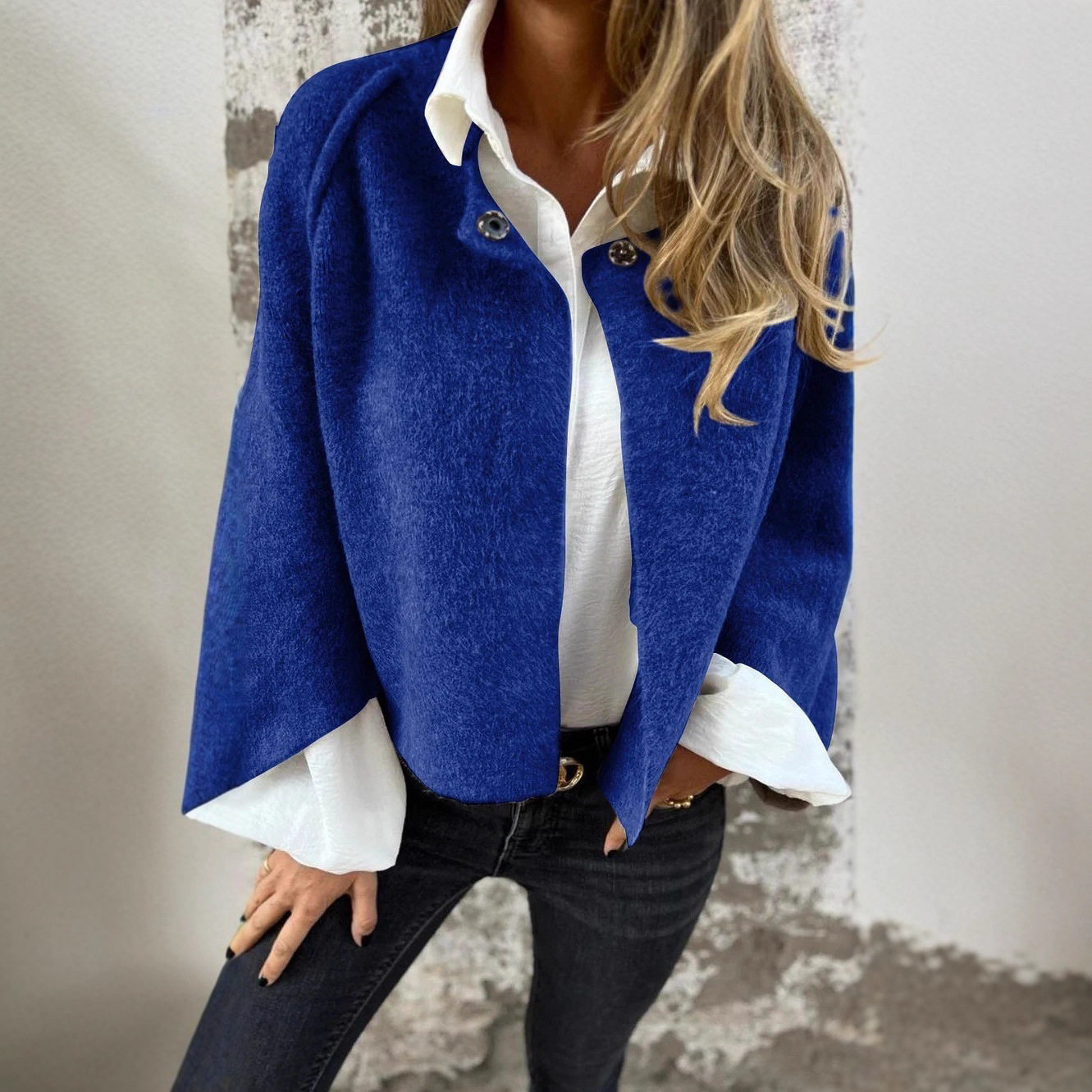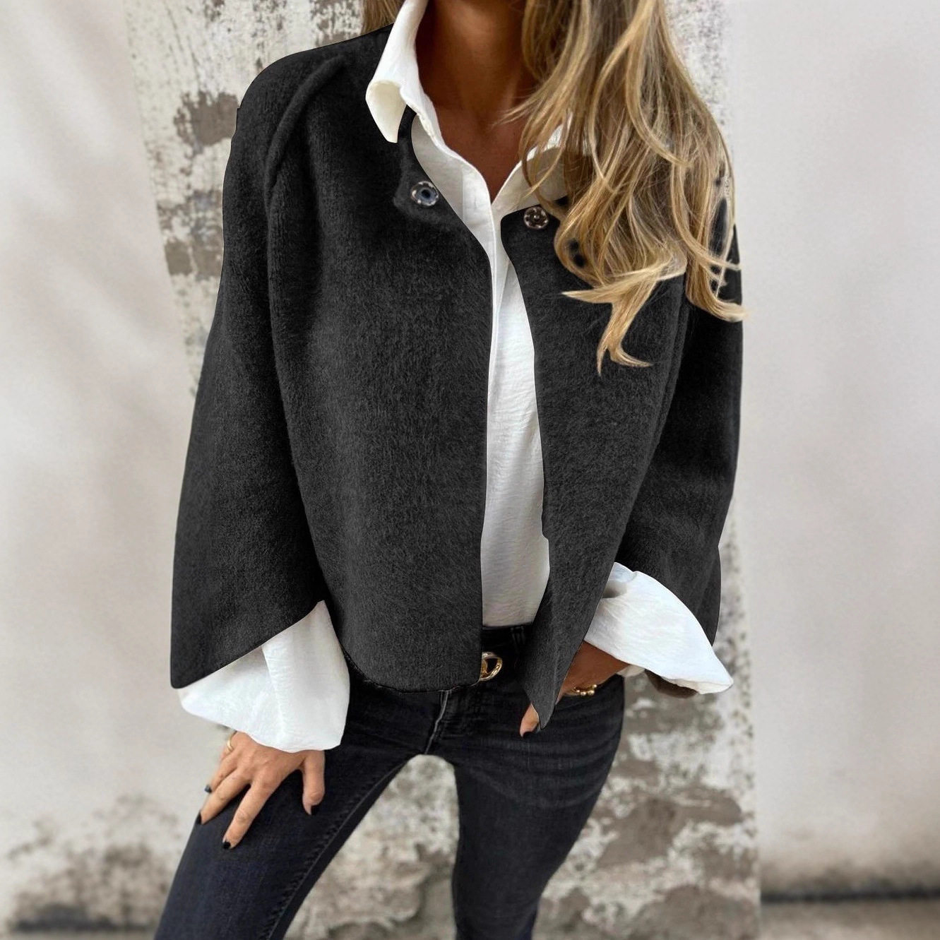 Women loose short cashmere long sleeved jacket女羊绒长袖外套