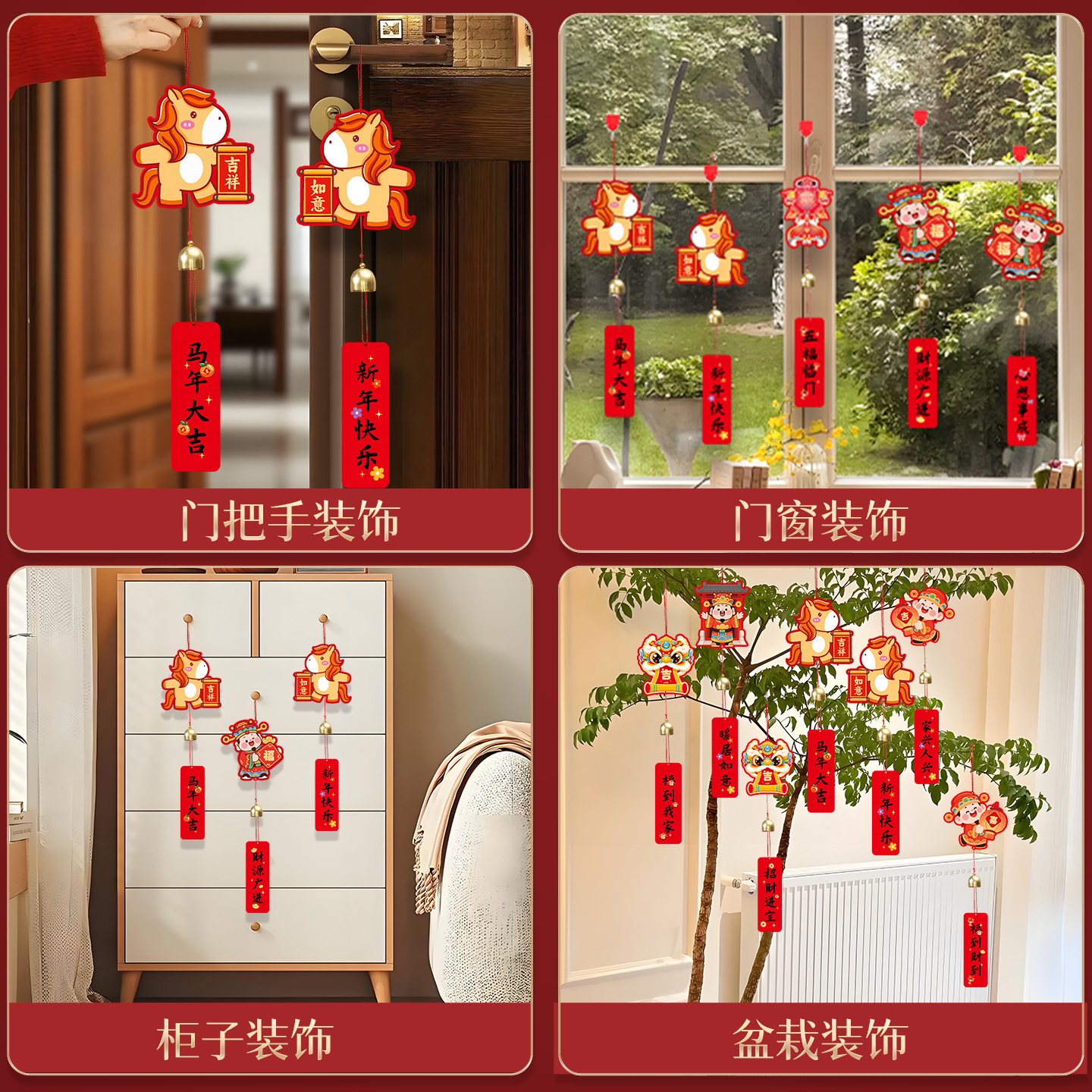 2026新款马年福字盆景小挂饰春节过年绿植铃铛室内挂件新年