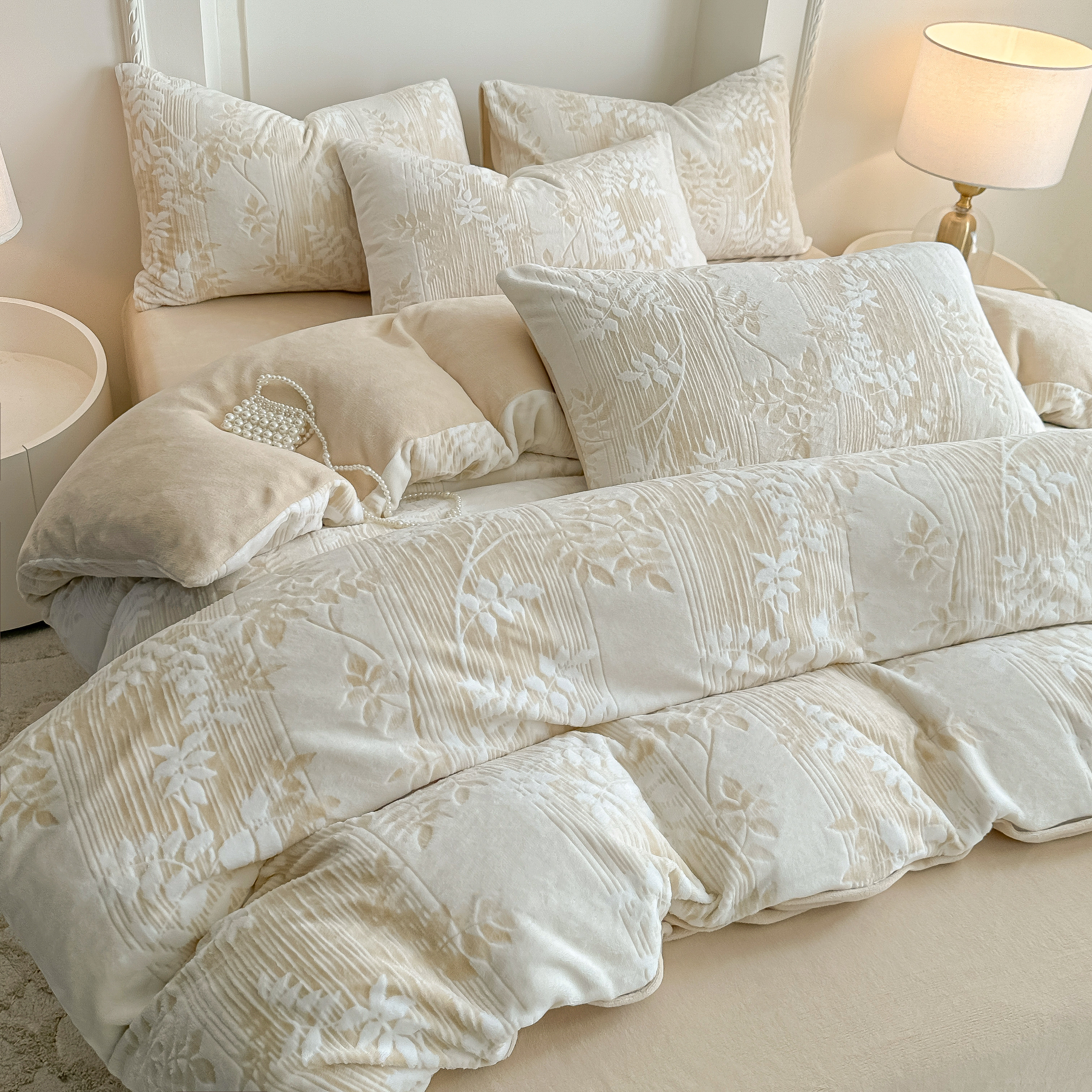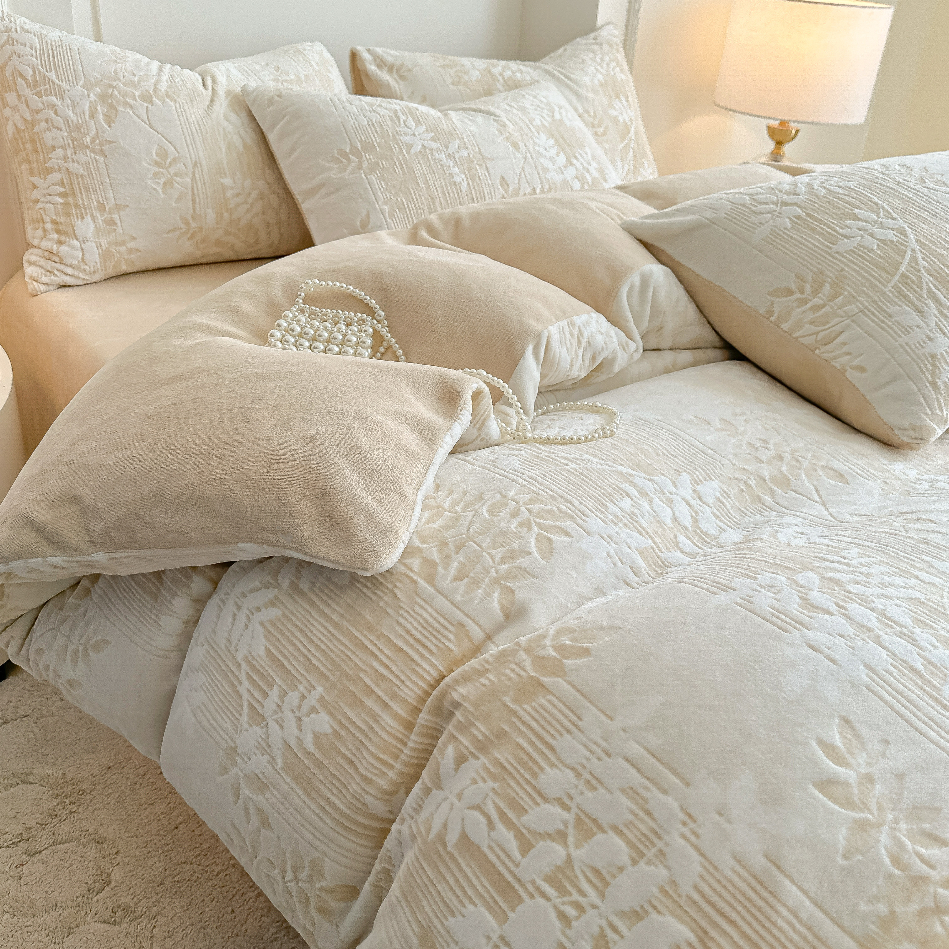 轻奢高级感雕花加厚牛奶绒四件套
