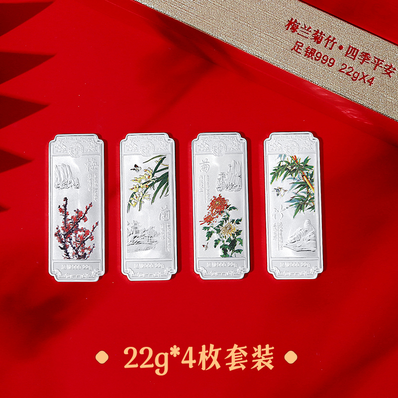 2025蛇年纯银999梅兰竹菊银条套装彩绘银条摆件投资收藏馈赠礼品