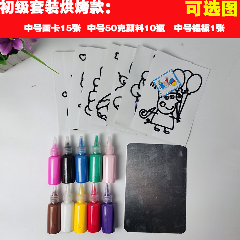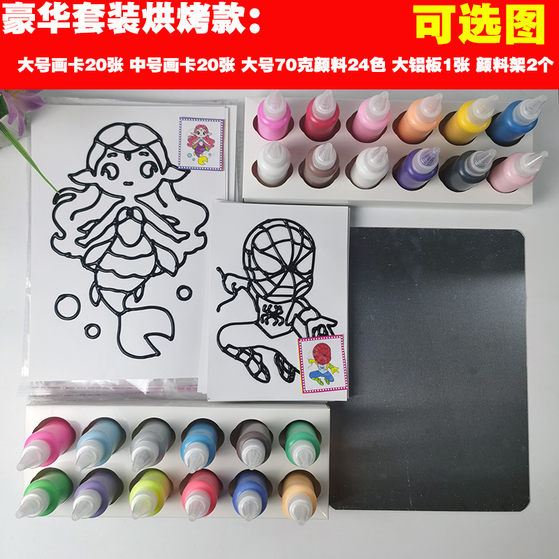 儿童免烤玻璃胶画立体烤画套装益智DIY手工涂色油膏颜料贴画制作