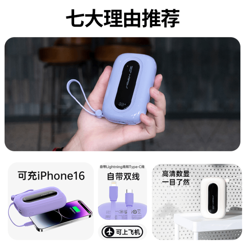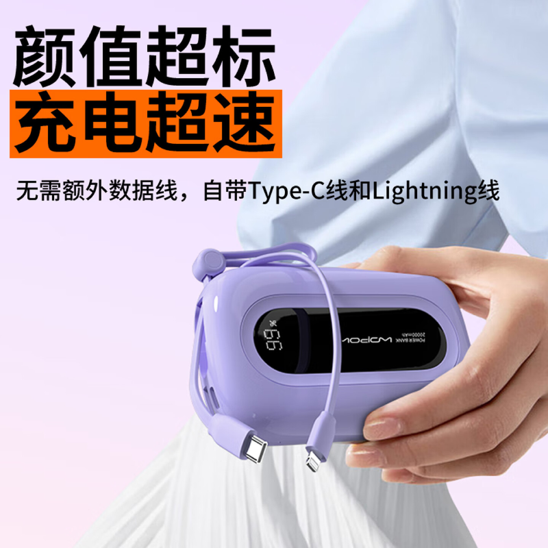 【3C认证】沃品充电宝小彩蛋20000毫安大容量上飞机自带双线快充