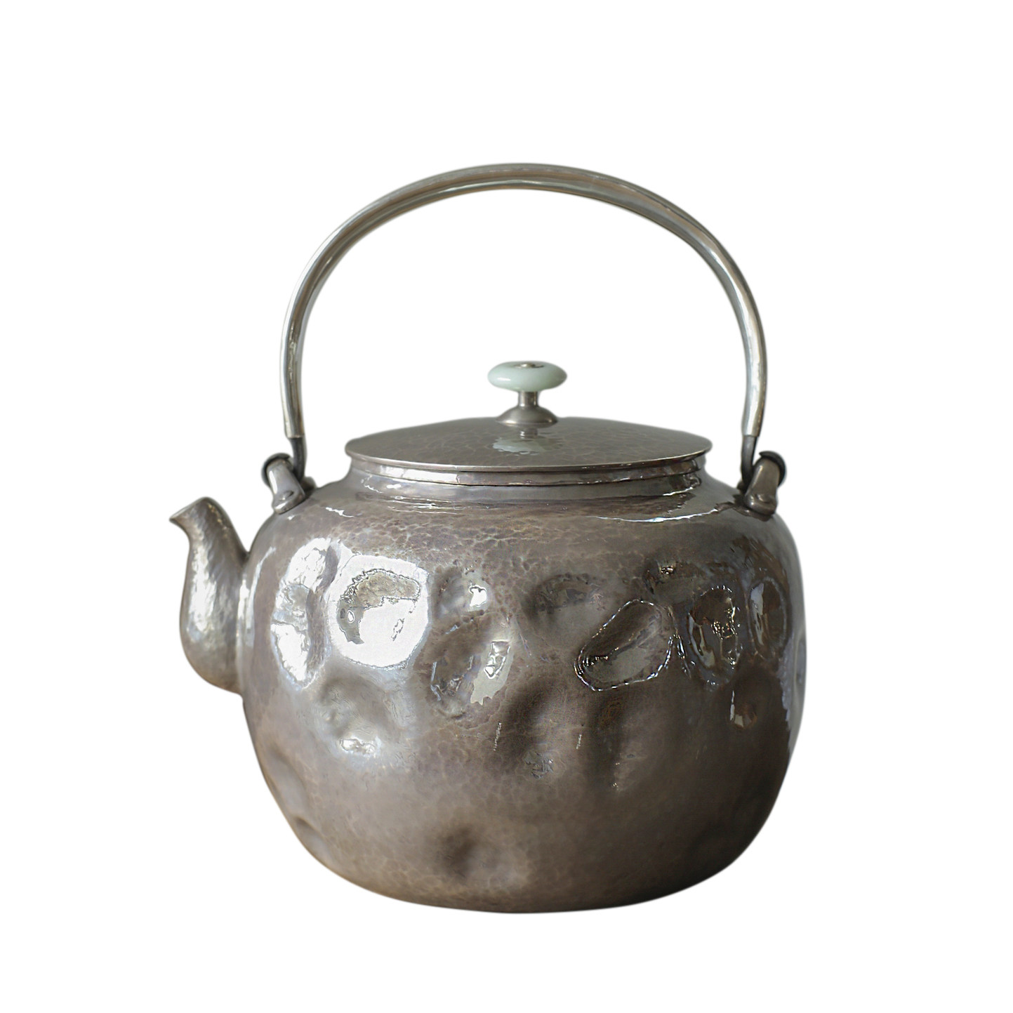 纯银时代日式口打出紫皮锤坑银壶足银999烧水壶手工银茶壶1100ml