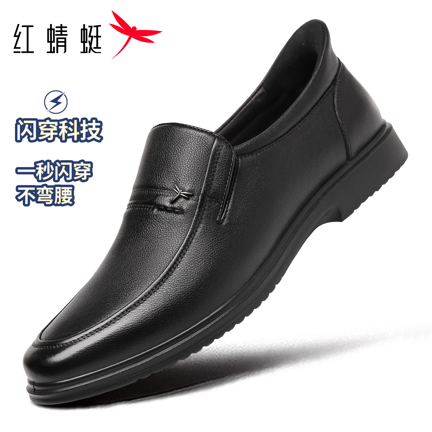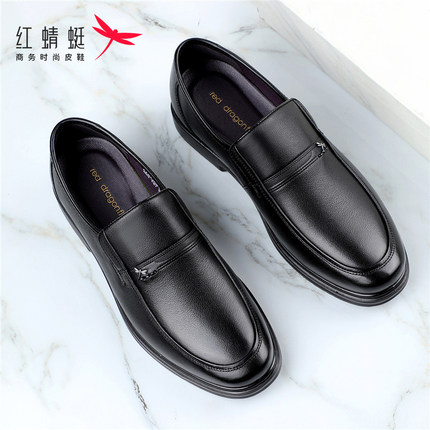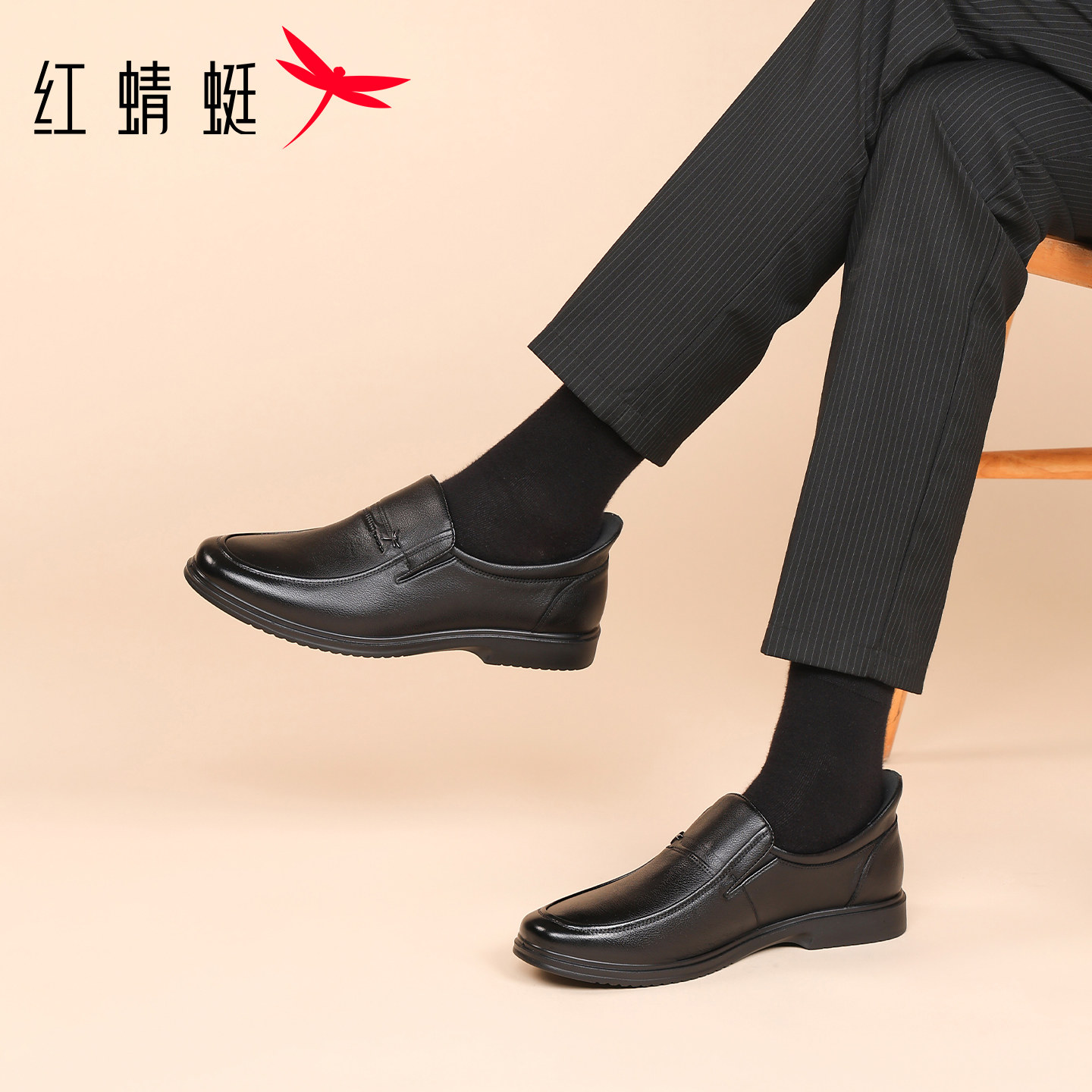 红蜻蜓男鞋秋冬加绒鞋子男士一脚蹬商务正装皮鞋男牛皮爸爸鞋真皮
