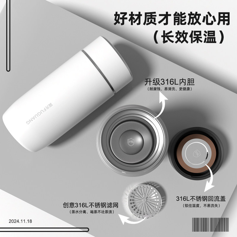 富光保温杯2025新款男士水杯316不锈钢鹅蛋杯子车载带过滤泡茶杯