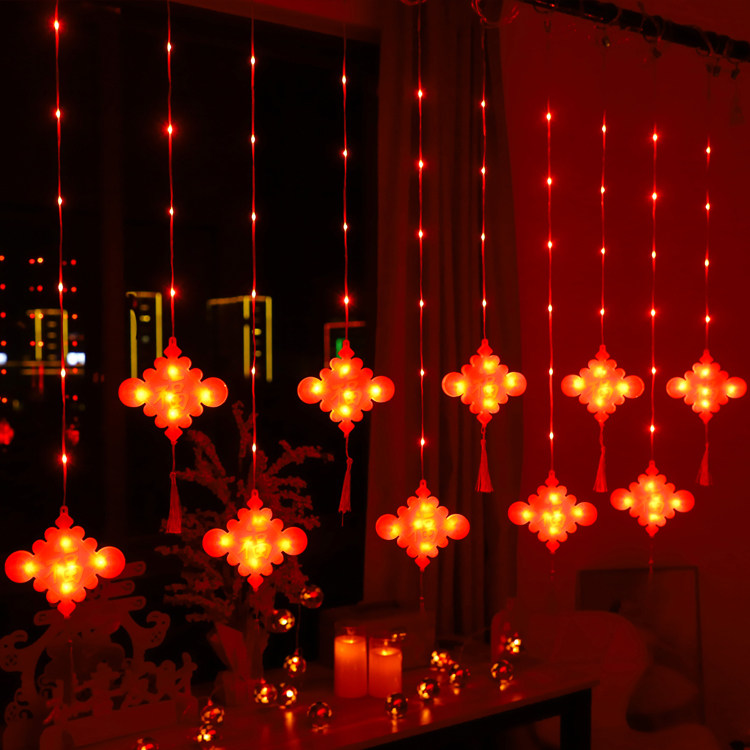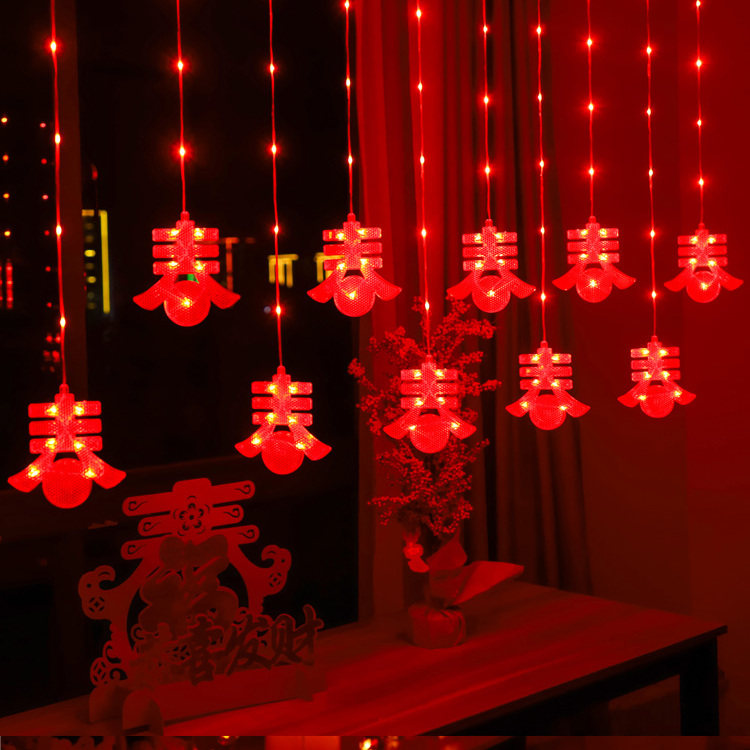春节新年红灯笼窗帘灯节日布置家用过年装饰灯彩灯闪灯串灯中国结