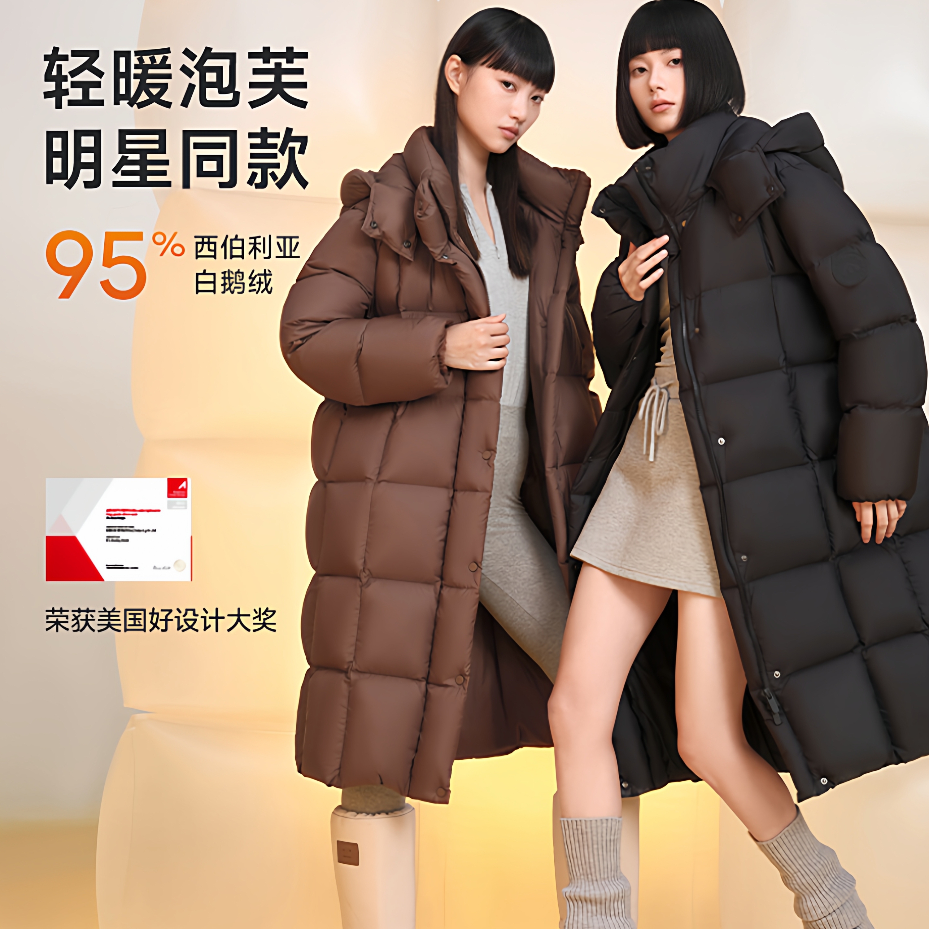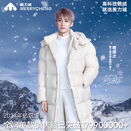 【檀健次同款】美力城羽绒服长款冬男女白鹅绒三防外套鹅绒服110