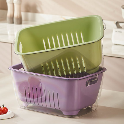 厨房双层沥水篮洗水果洗碗家用洗菜盆滤水水蓝水果盘塑料篮子收纳