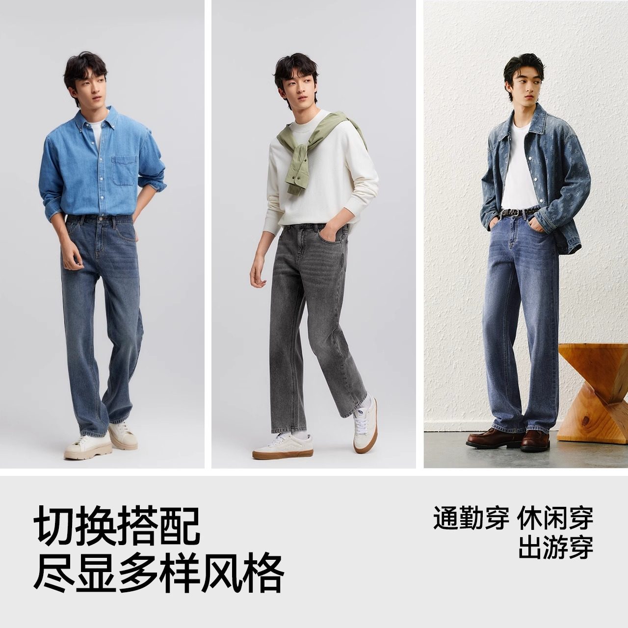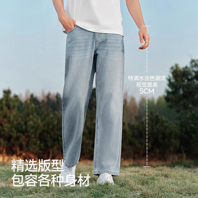 森马牛仔裤男夏季新款宽松美式复古水洗直筒长裤男士原色薄款裤子