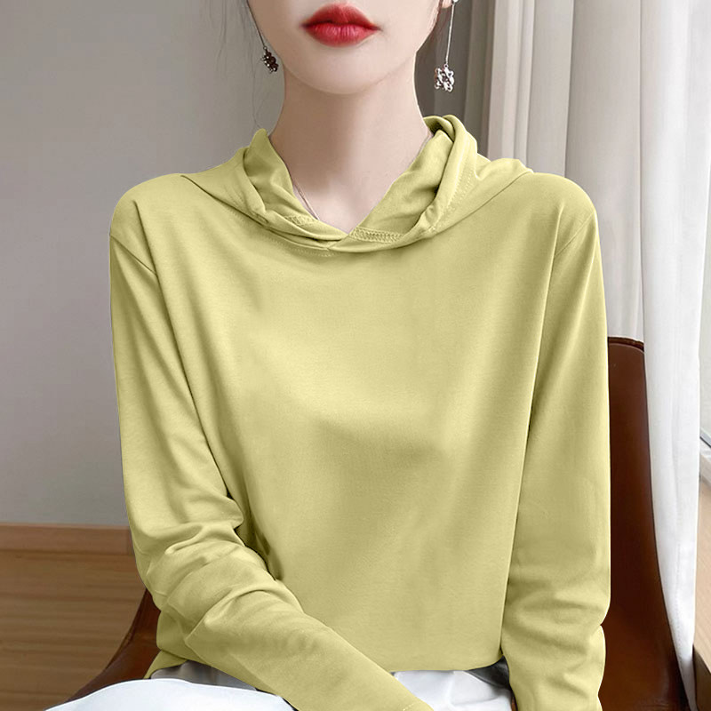纯棉连帽长袖t恤女春秋新款宽松显瘦洋气减龄上衣打底帽衫薄卫衣