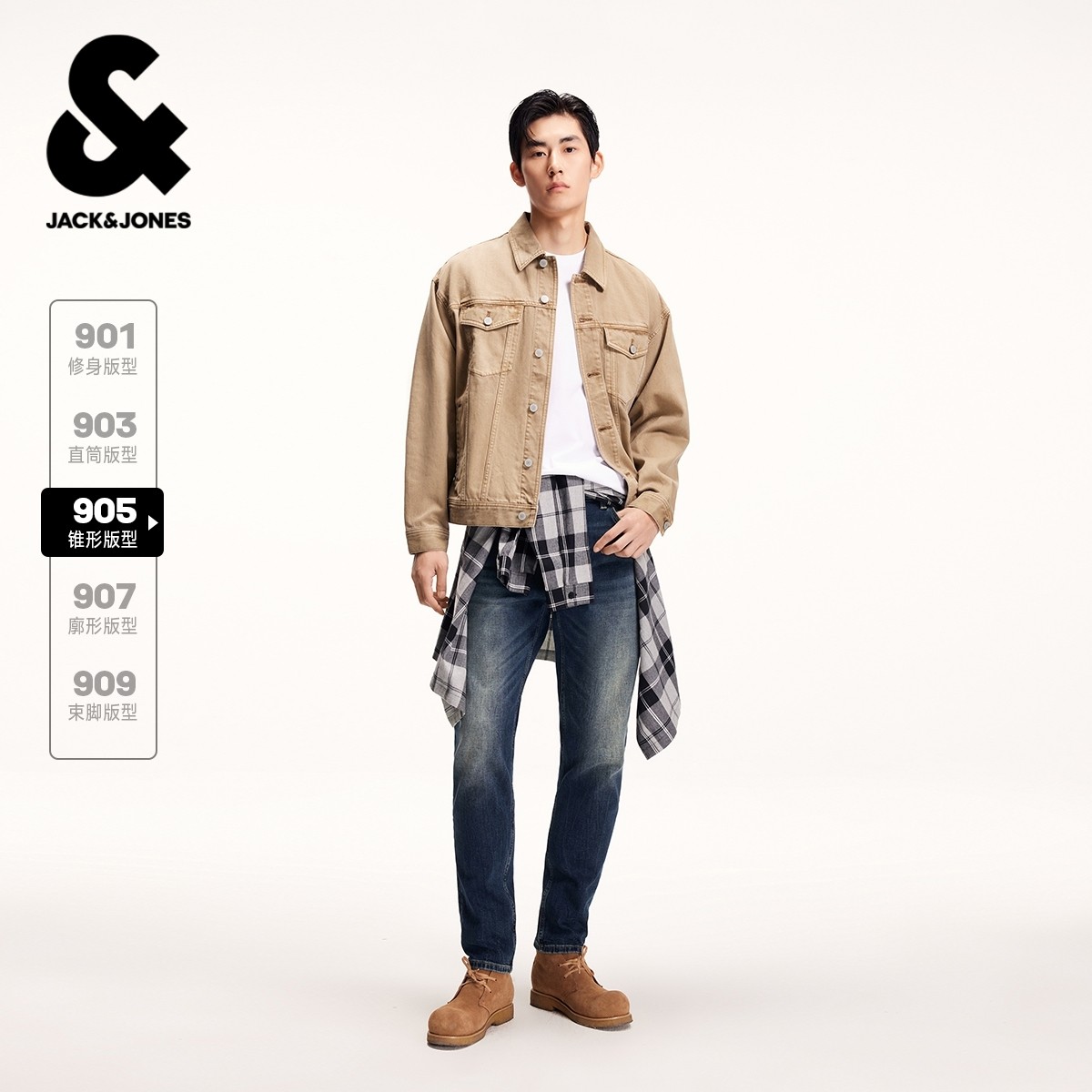 杰克琼斯男装春季牛仔长裤子柔软舒适猫须水洗简约休闲锥形2026