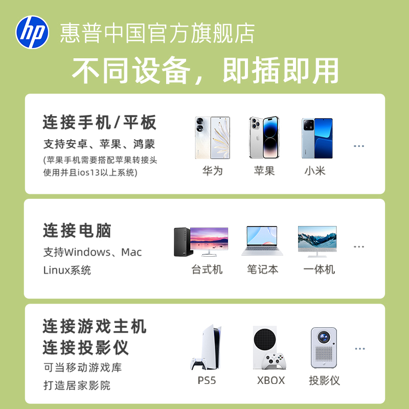 【十年质保】惠普1tb固态移动硬盘大容量高速u盘外接手机电脑两用