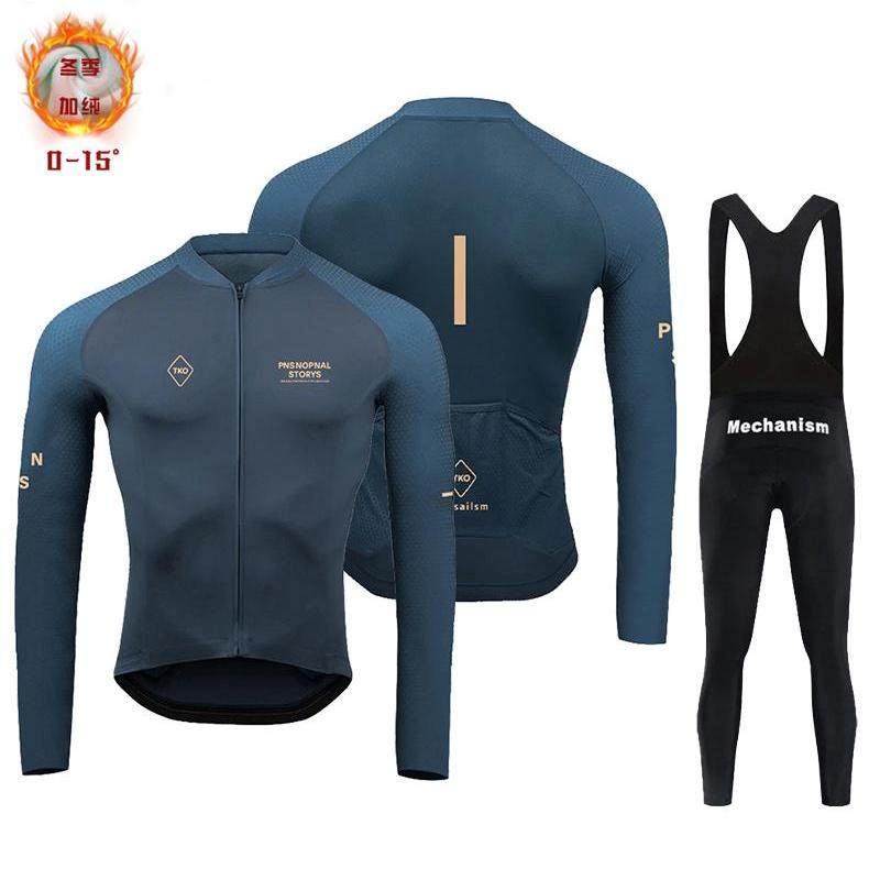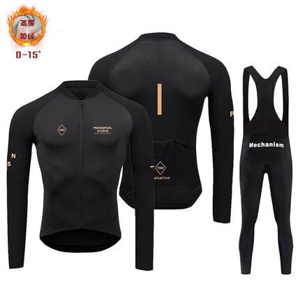外贸清仓PAS骑行服套装抓绒保暖长袖背带长裤男女款秋冬季户外