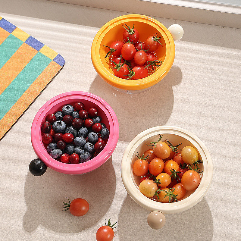 可爱迷你沥水篮双层洗水果神器厨房滤水洗菜盆家用客厅精致小果盘