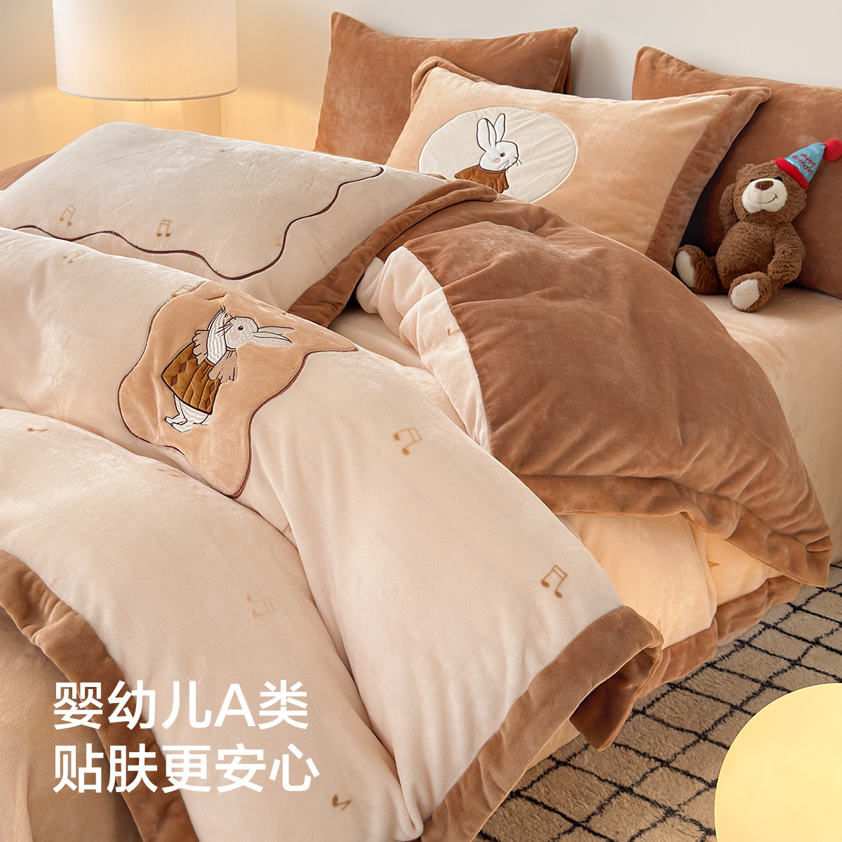 水星家纺儿童保暖牛奶绒套件抗静电暖绒三/四件套卡通床品25新品