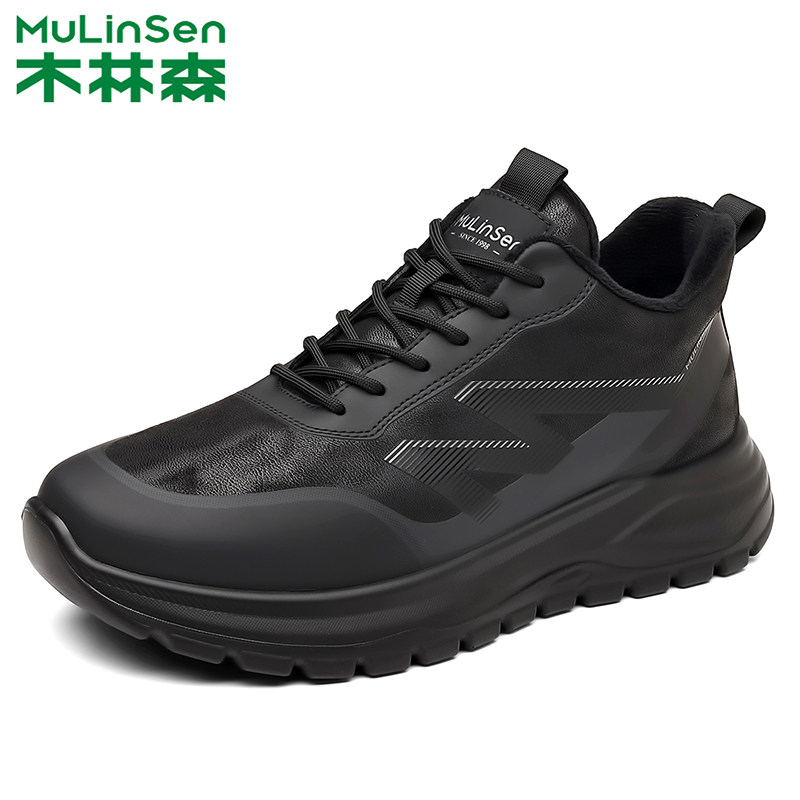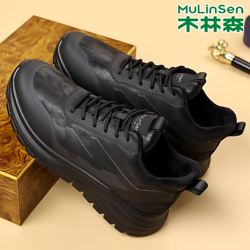 木林森男鞋冬季加厚绒毛保暖防滑厚底休闲鞋户外棉鞋系带时尚舒适
