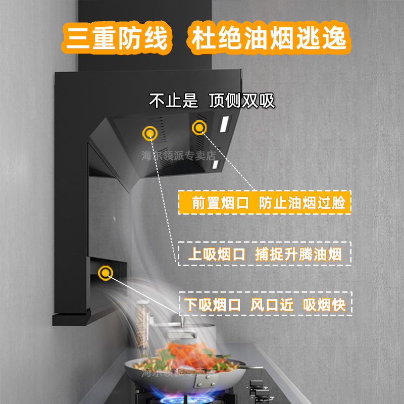 海尔吸油抽油烟机家用厨房大吸力排油出租房顶侧3吸EC723烟灶套装