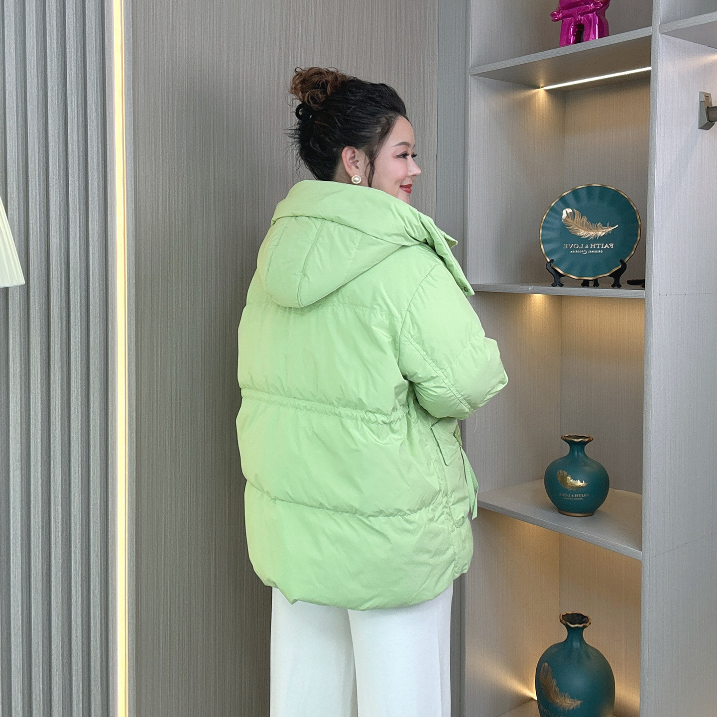 大码胖mm羽绒服女短款收腰显瘦保暖连帽白鸭绒减龄200斤加厚外套