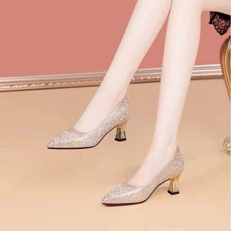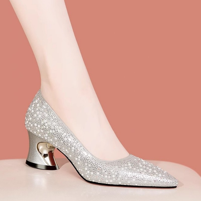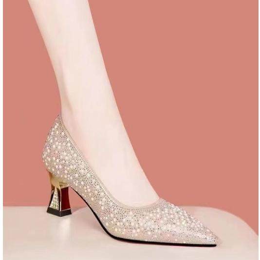品牌中跟尖头水钻婚鞋气质女鞋子