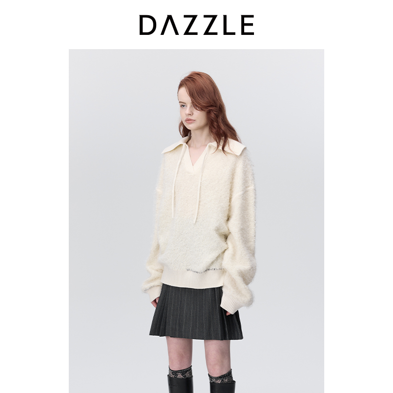 DAZZLE地素奥莱针织翻领套衫休闲慵懒风冬季抽绳毛衣女