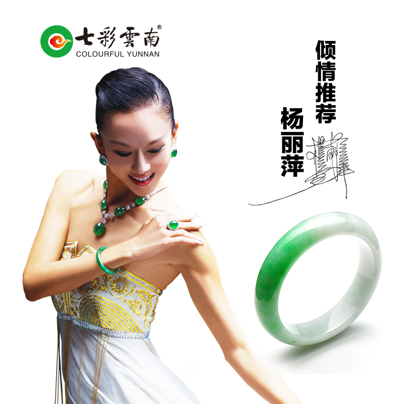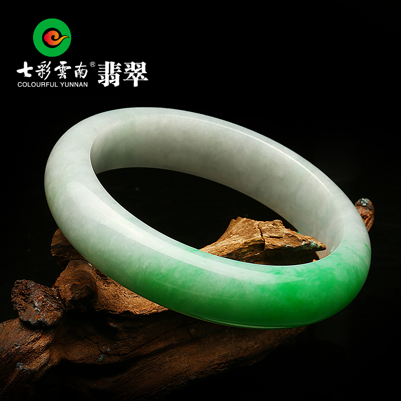 七彩云南翡翠手镯冰糯种飘花手镯玉镯子女款玉手镯送女友礼物