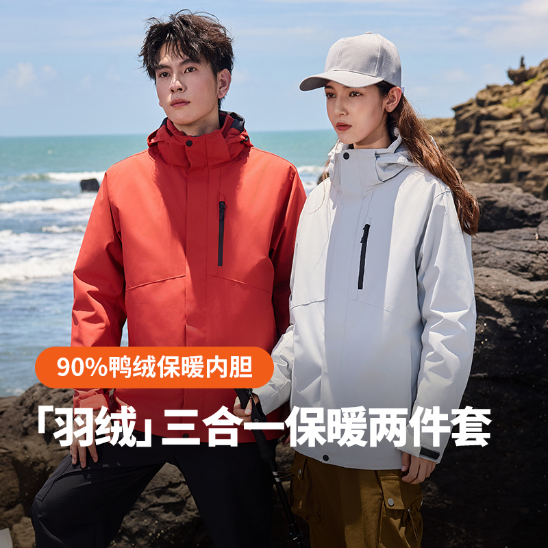 德国羽绒冲锋衣两件套羽绒内胆可拆卸三合一外套男女冬季防雨登山