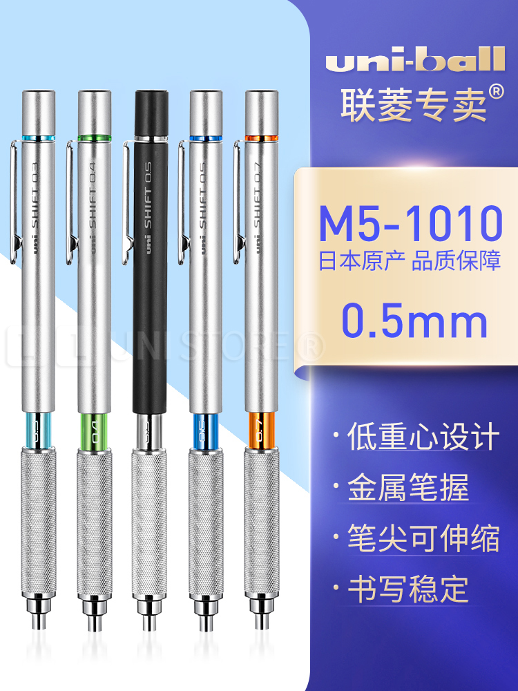 日本UNI三菱M5-1010 自动绘图铅笔0.4/0.5mm低重心半金属活动铅笔小学生书写铅笔 绘画素描铅笔 三菱自动铅笔