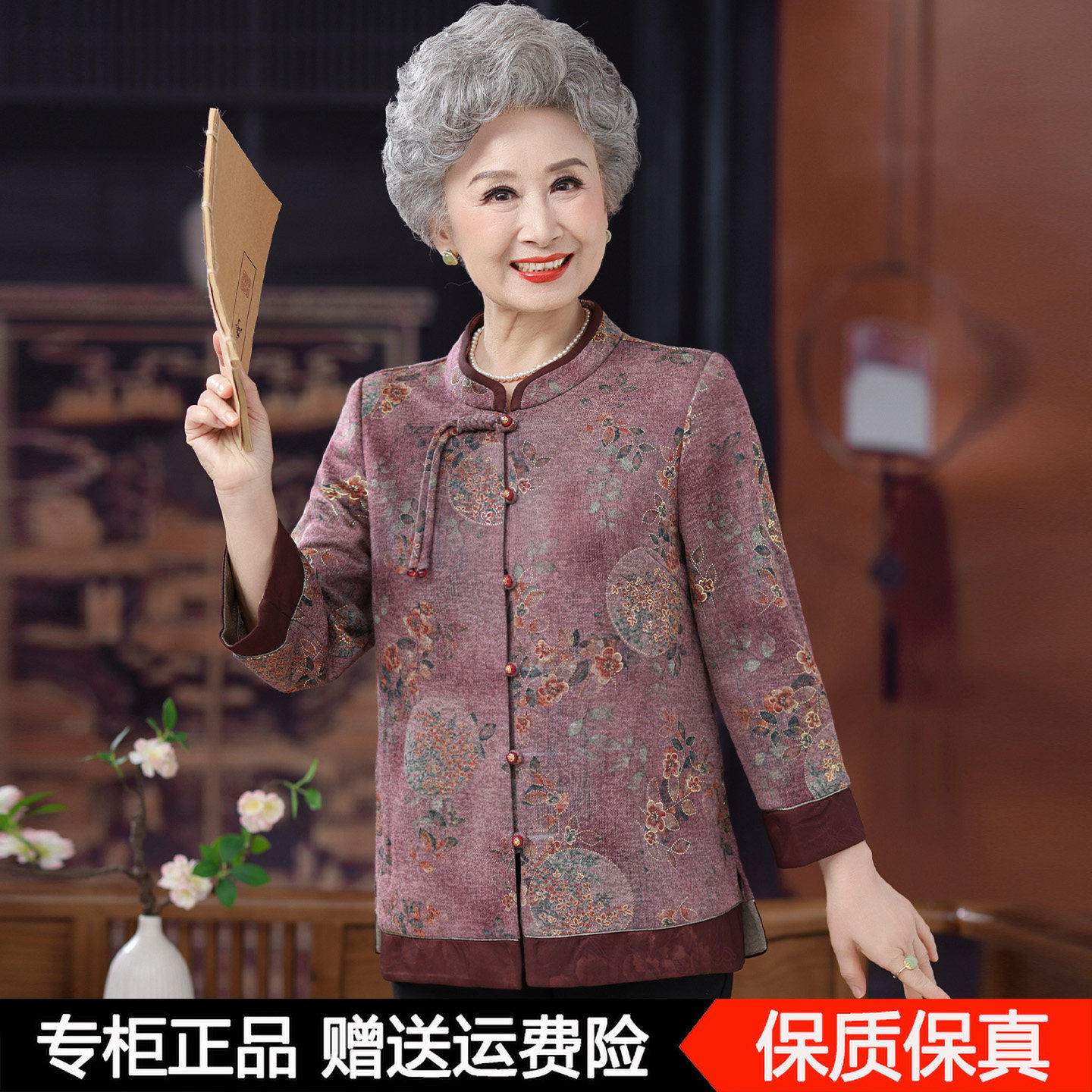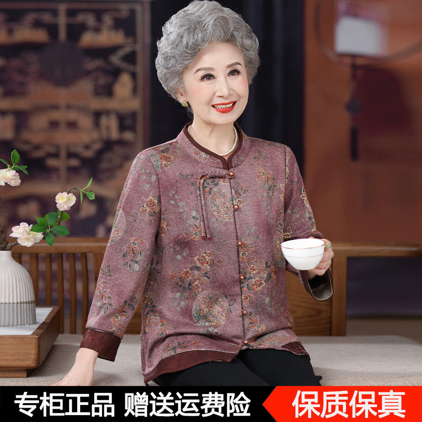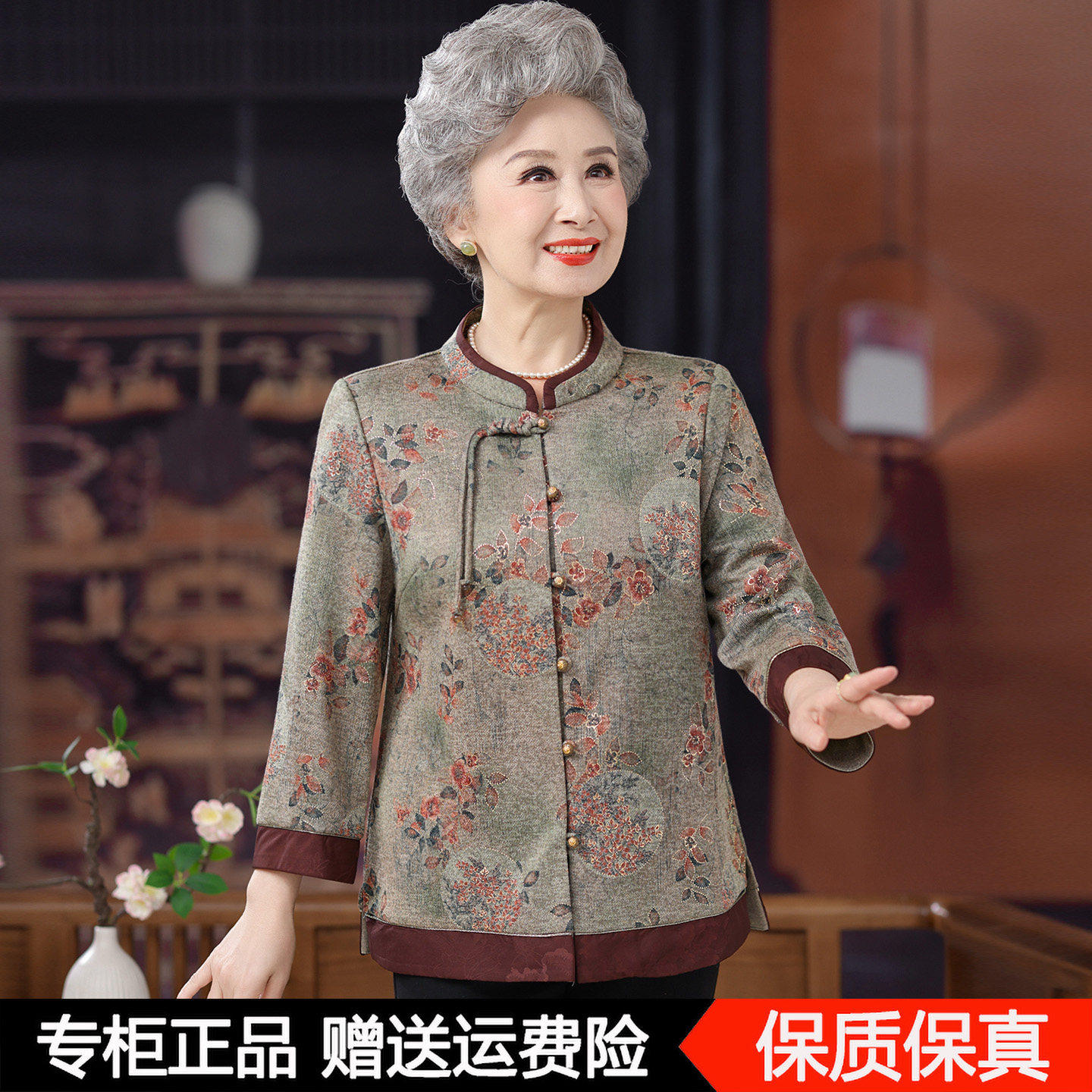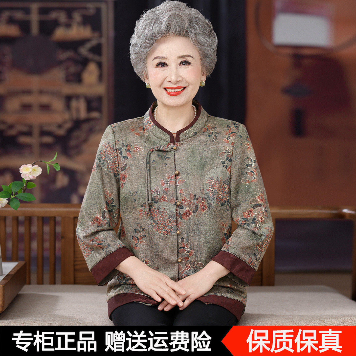 奶奶秋装羊毛衬衫新中式国风外套妈妈上衣宽松中老年人老太太衣服