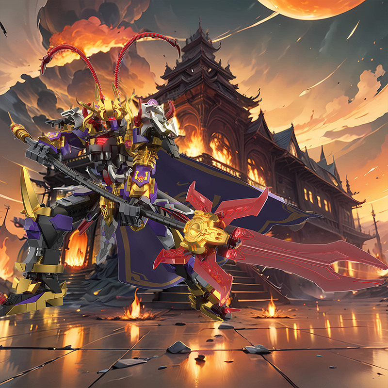 哲高积木儿童益智拼装三国机器人模型吕布机甲摆件男孩子玩具礼物