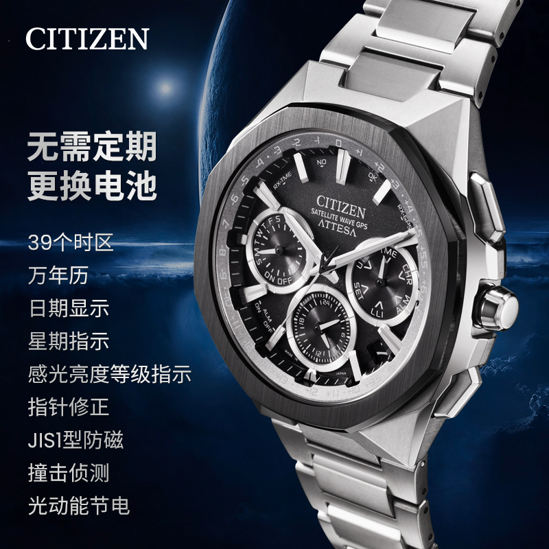 【新品】西铁城光动能卫星对时ATTESA系列舒博钛八角男表CC4104