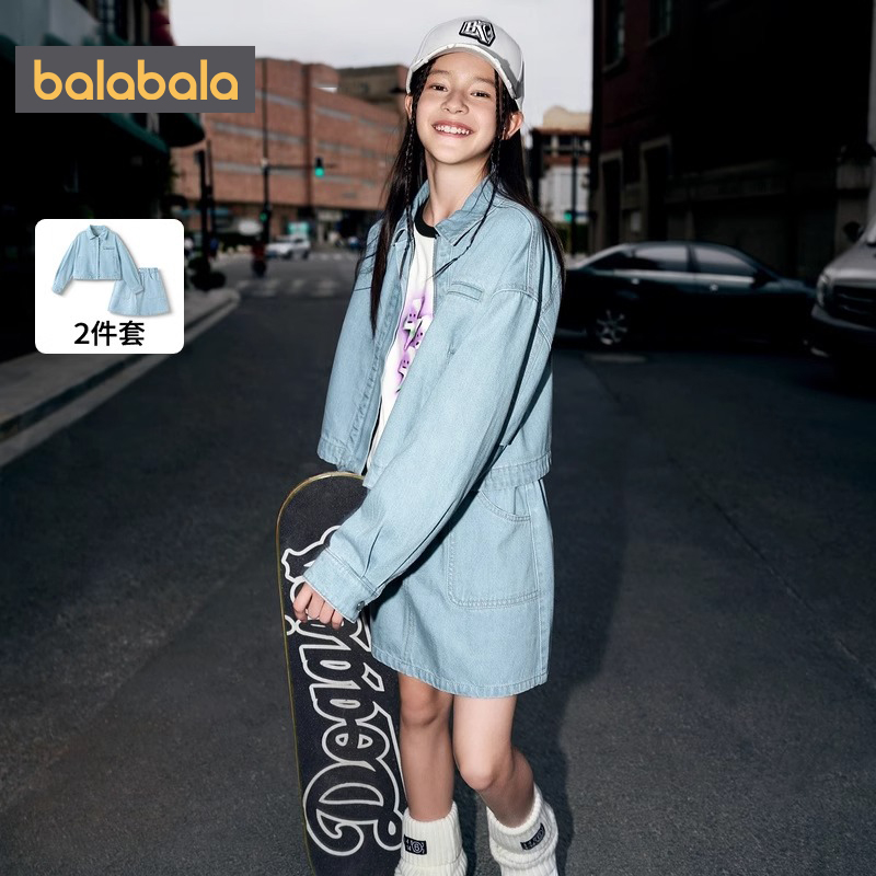 巴拉巴拉女童牛仔套装中大童衬衫短裙两件套春秋款童装儿童衣服潮