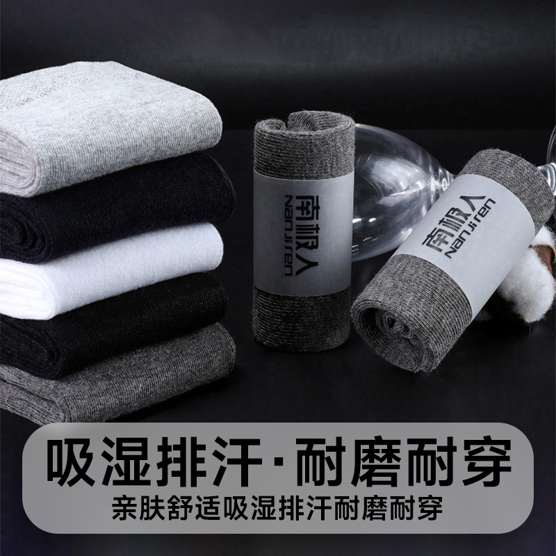 南极人中筒袜子男士春秋冬季纯棉吸汗纯色全棉新款长筒袜10双盒装