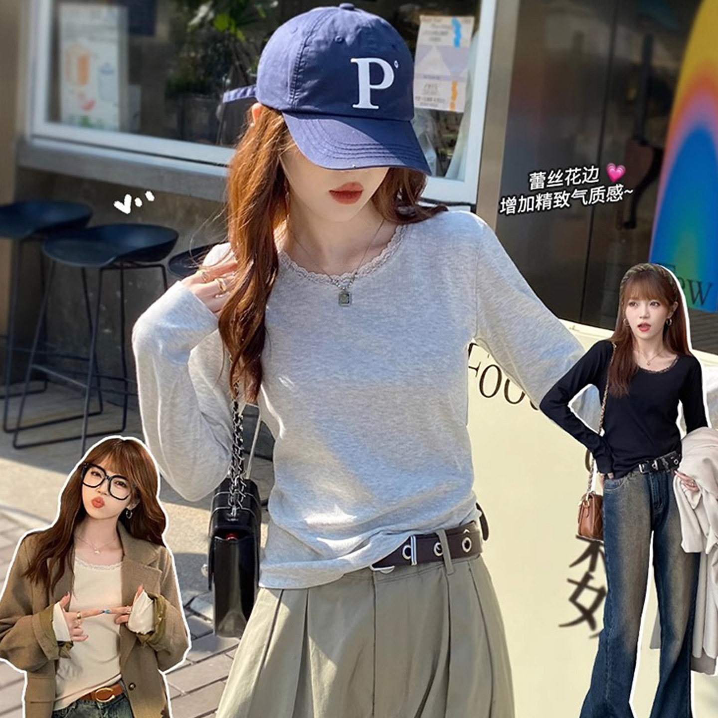 大码蕾丝打底衫女秋冬2025新款