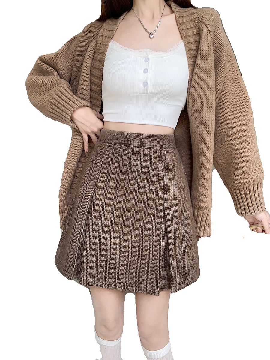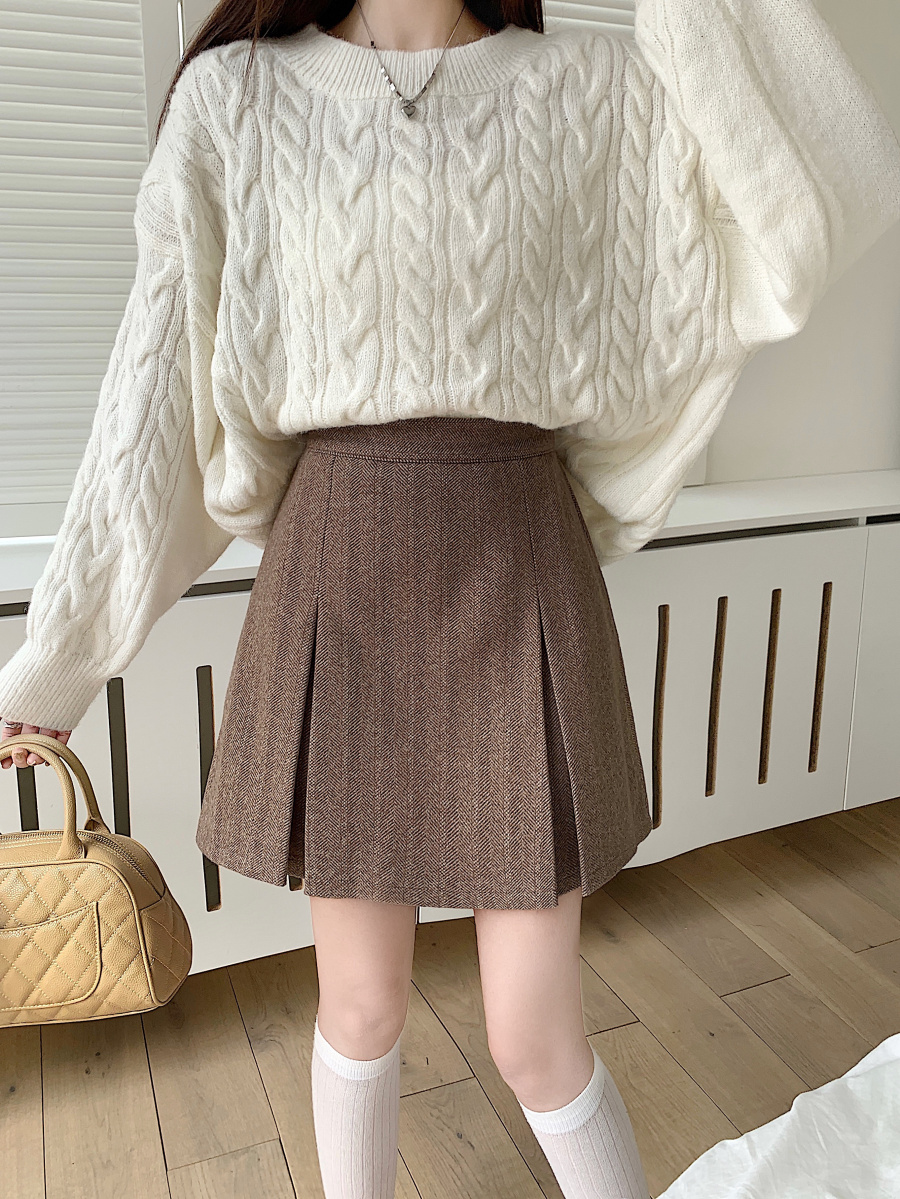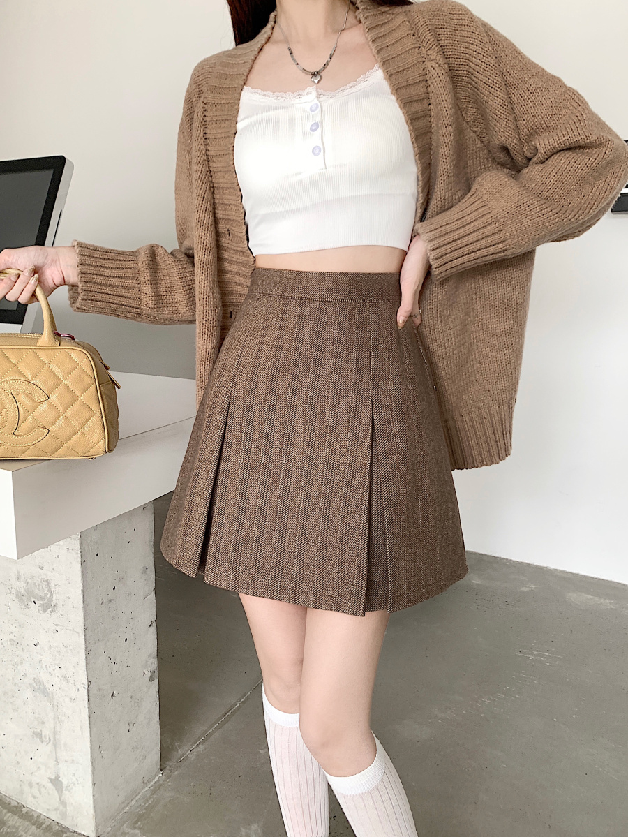 大码咖色毛呢半身裙女秋冬新款高腰a字包臂裙显瘦格纹短裙一步裙