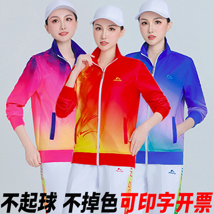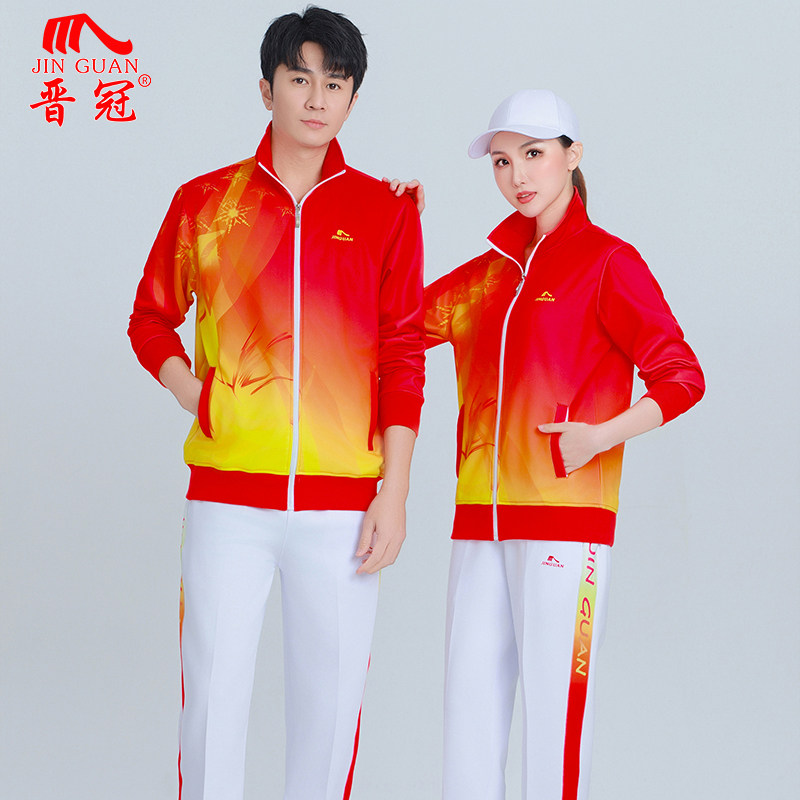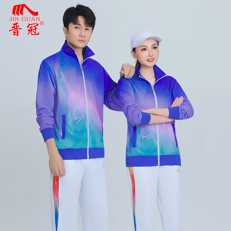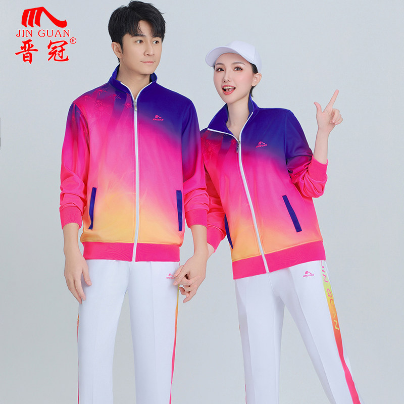 晋冠渐变色印花长袖运动服套装男女佳木斯广场舞中老年团体三件套