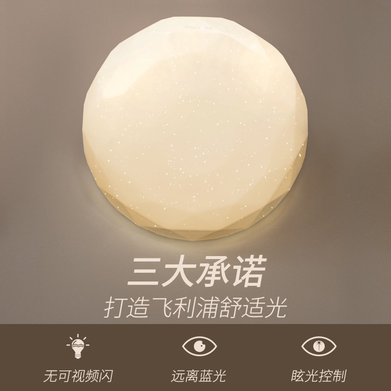 飞利浦品皓led吸顶灯卧室灯小客厅书房房间暖光简约现代创意灯具