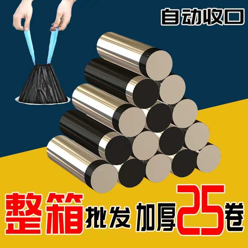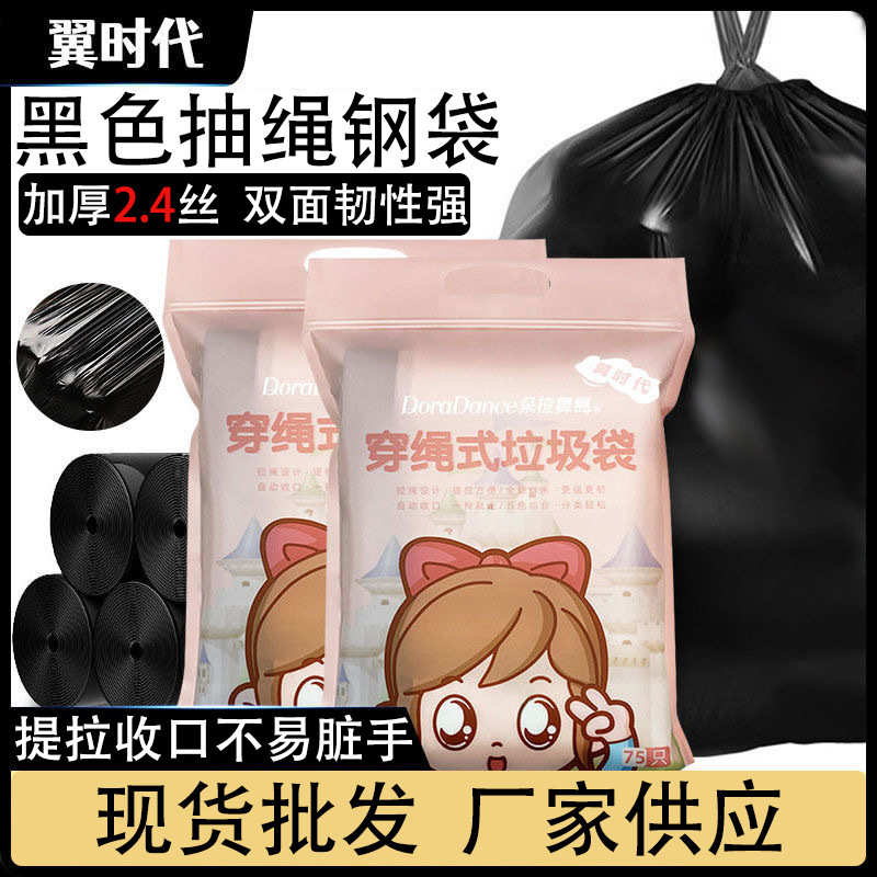 大号黑色加厚抽绳手提式垃圾袋 家用一次性自动收口批发塑料袋