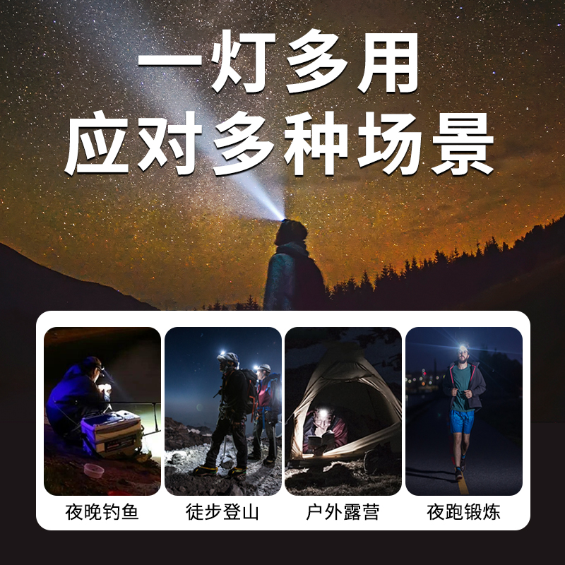 2025新款头灯强光充电超亮钓鱼专用头戴式超长续航夜钓登山小手电