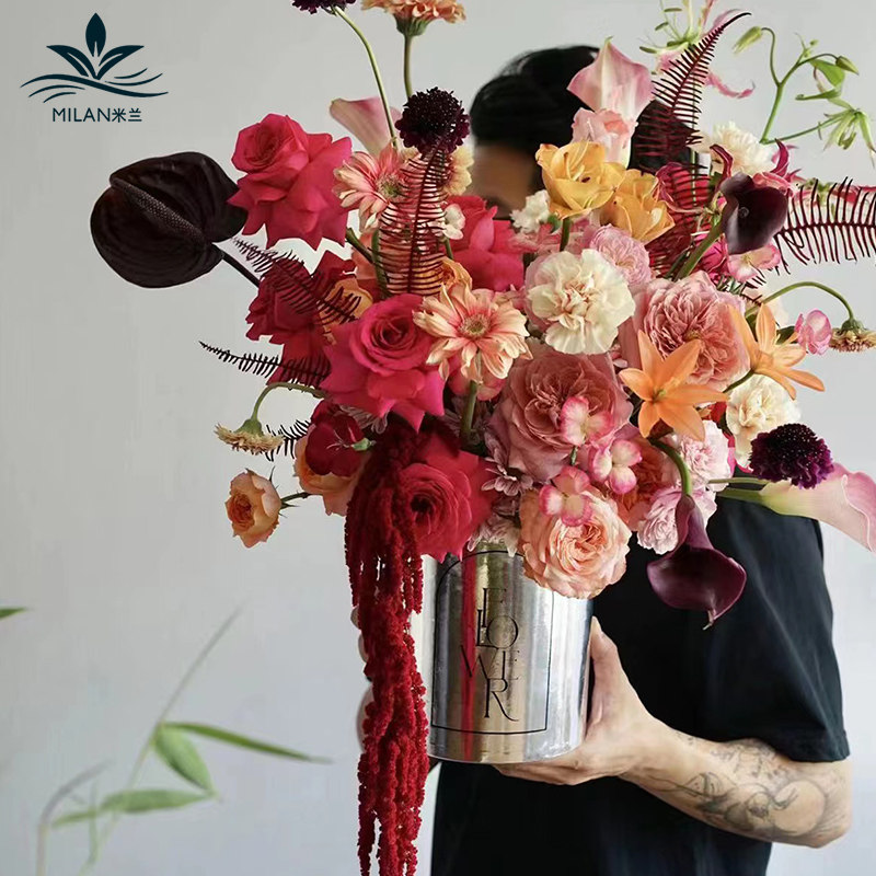米兰亮银抱抱桶鲜花礼盒