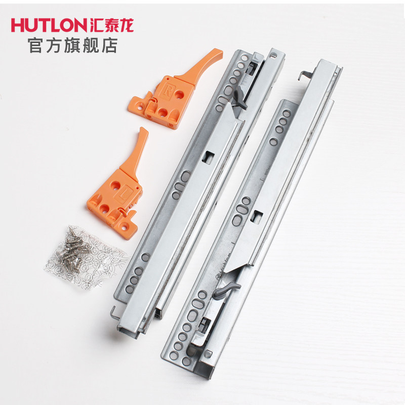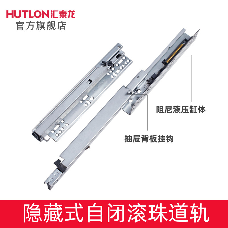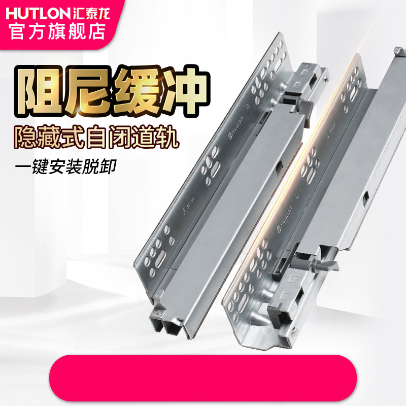 汇泰龙抽屉导轨托底轨道r隐藏式自闭底部缓冲三节道轨脱卸轨滑569