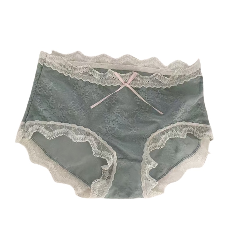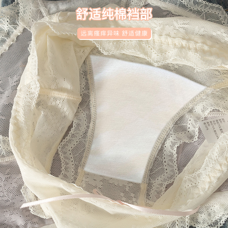 女士蕾丝性感中腰日系少女轻薄透气花边内裤感蝴蝶结速干诱惑提臀