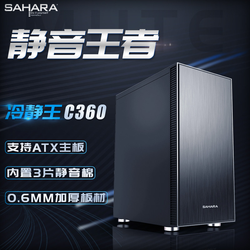 撒哈拉冷静王C360台式电脑静音机箱ATX中塔背线水冷简约办公机箱