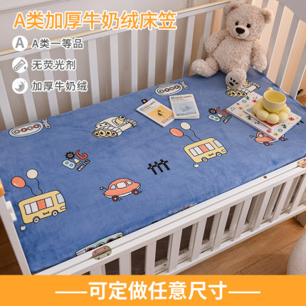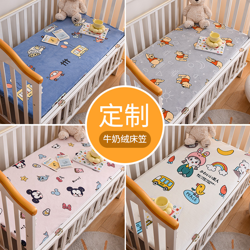 婴儿床笠秋冬季加厚牛奶绒定制新生儿童床单A类宝宝拼接床垫套罩