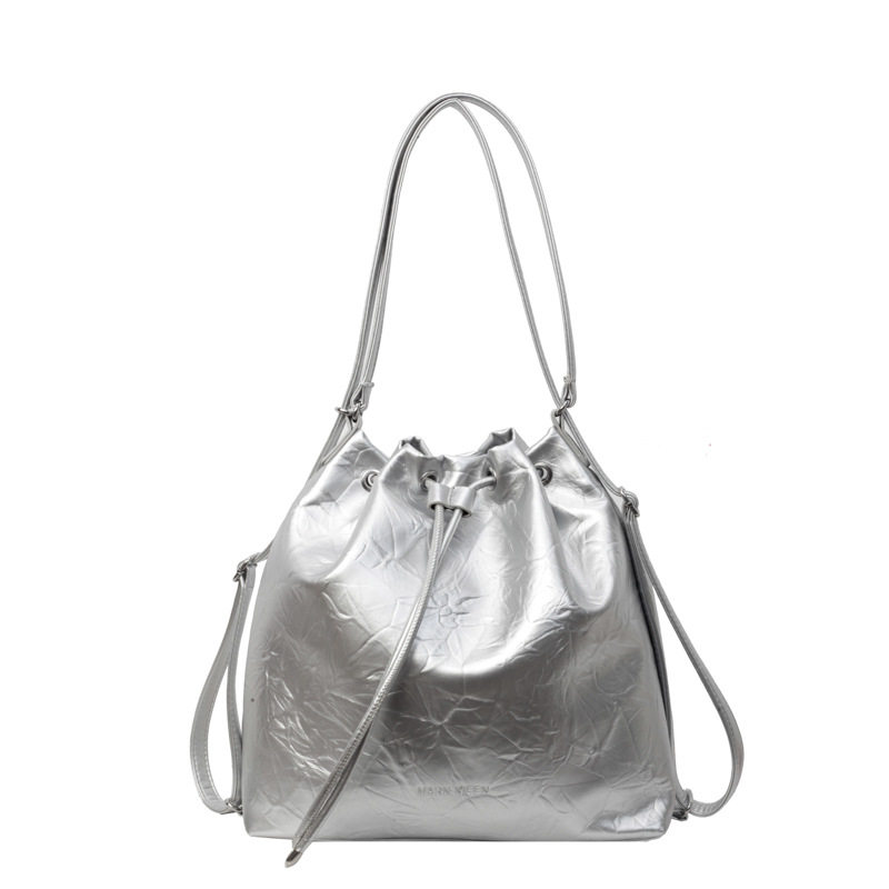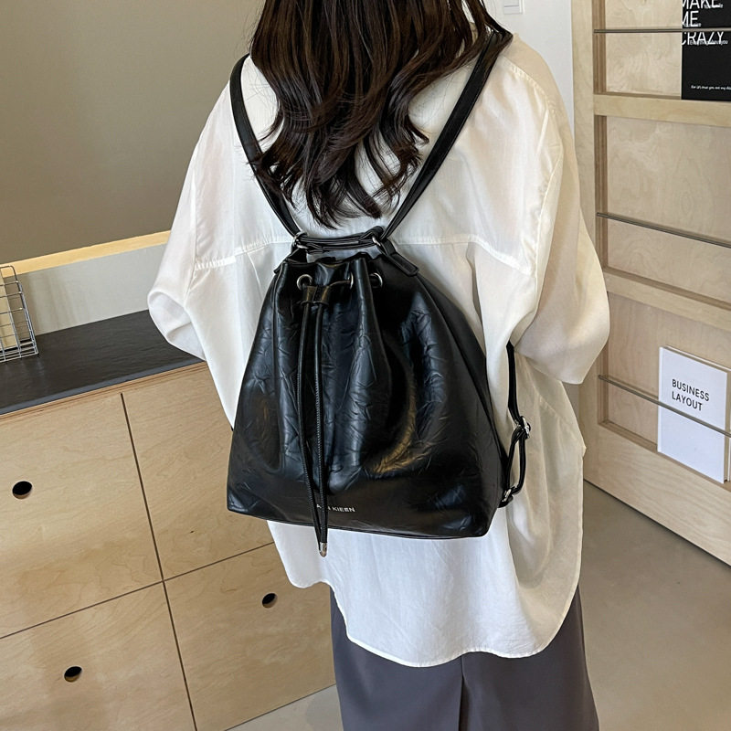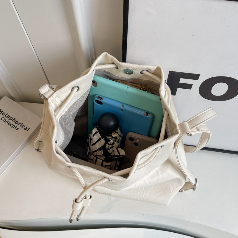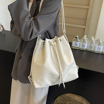 2024夏季新款束口抽带通勤包单肩时尚水桶包大容量女士手提双肩包