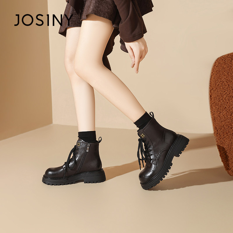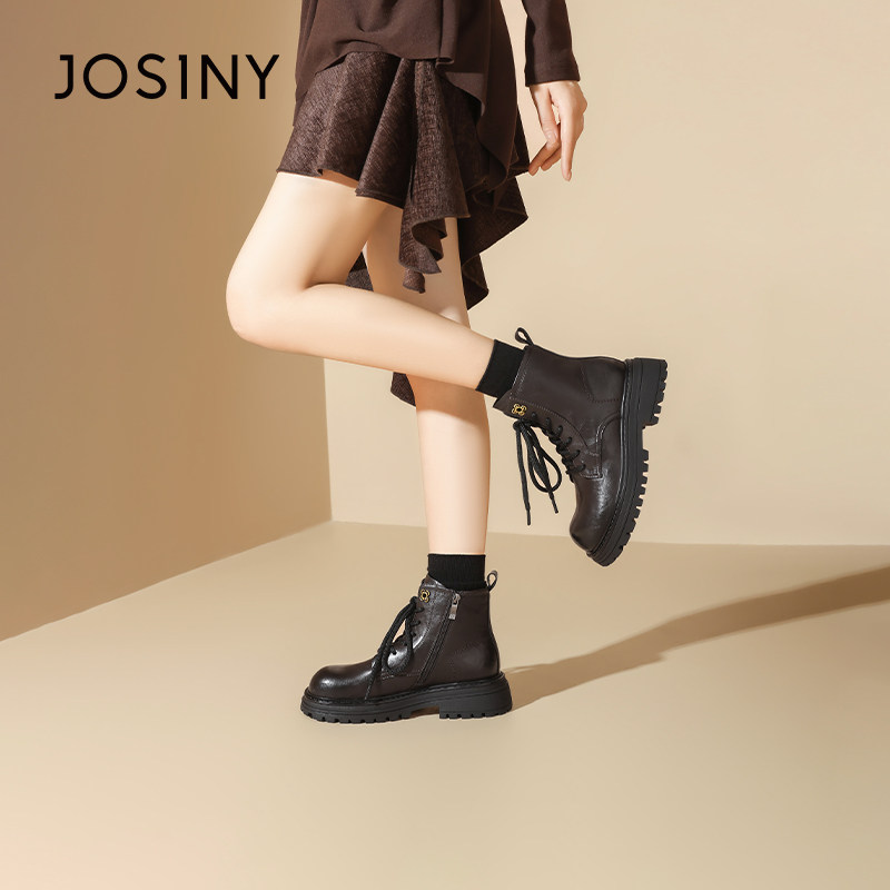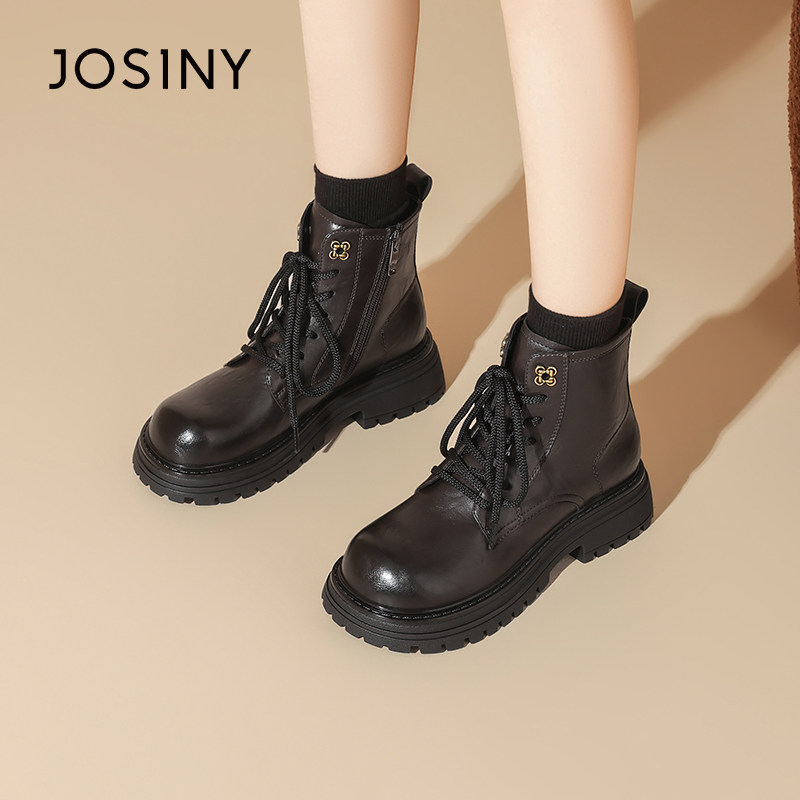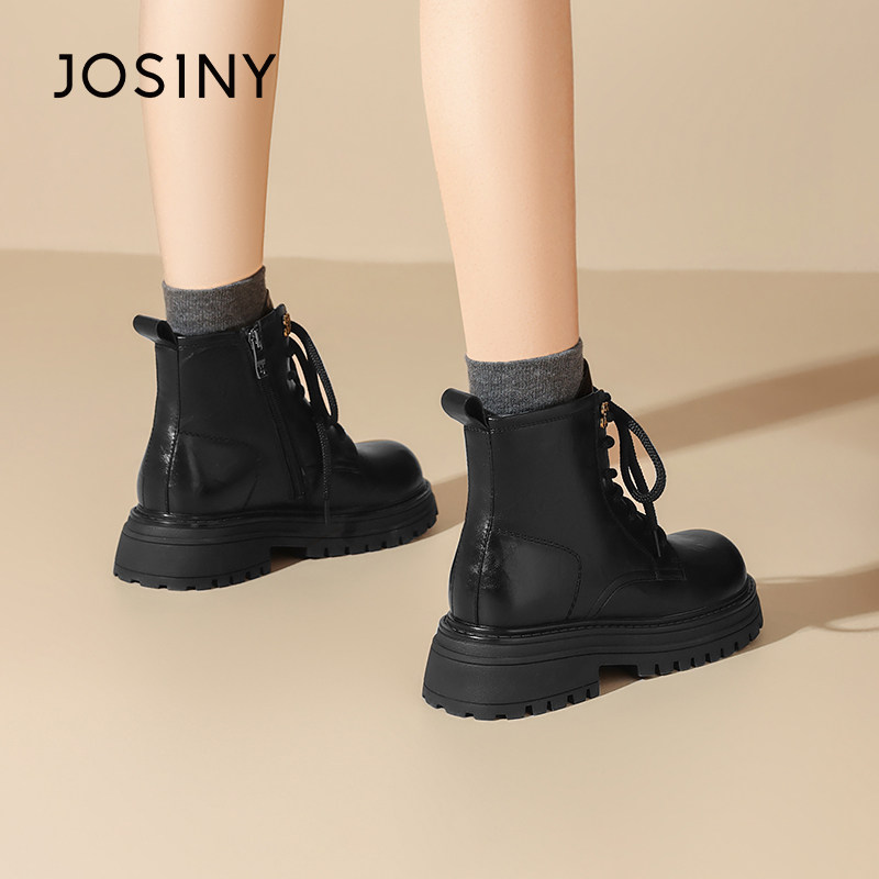 卓诗尼2025冬季新款厚底马丁靴单里加绒英伦百搭机车短靴软底女鞋