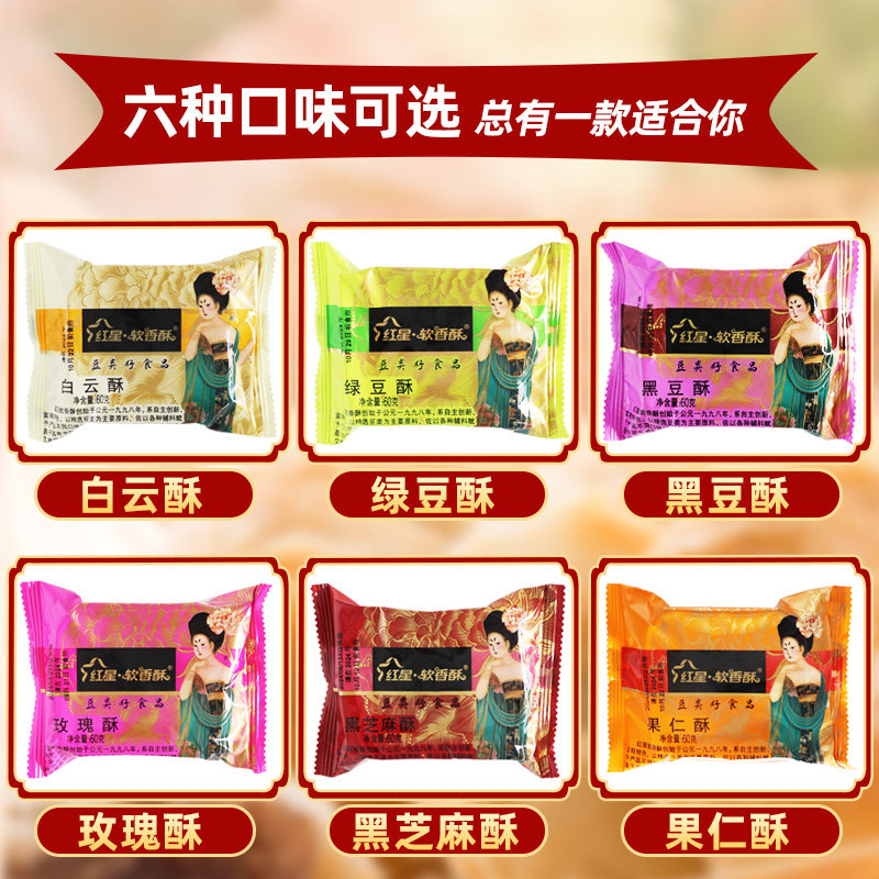 红星软香酥60g陕西特产黑绿豆白云酥散装中秋西安送礼酥皮糕点心