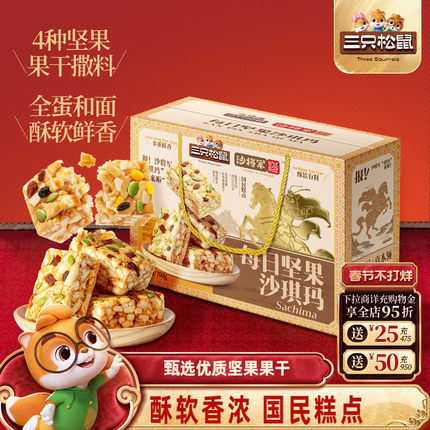 三只松鼠_每日坚果沙琪玛礼盒特产营养早餐中式糕点心年货送礼盒