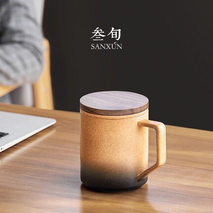 叁旬知行马克杯陶瓷茶水分离茶杯
