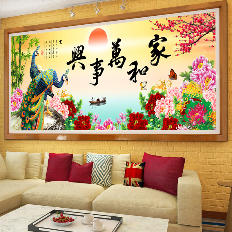 5d炫彩钻石画满钻家和万事兴孔雀2025新款客厅风景高端贴钻十字绣