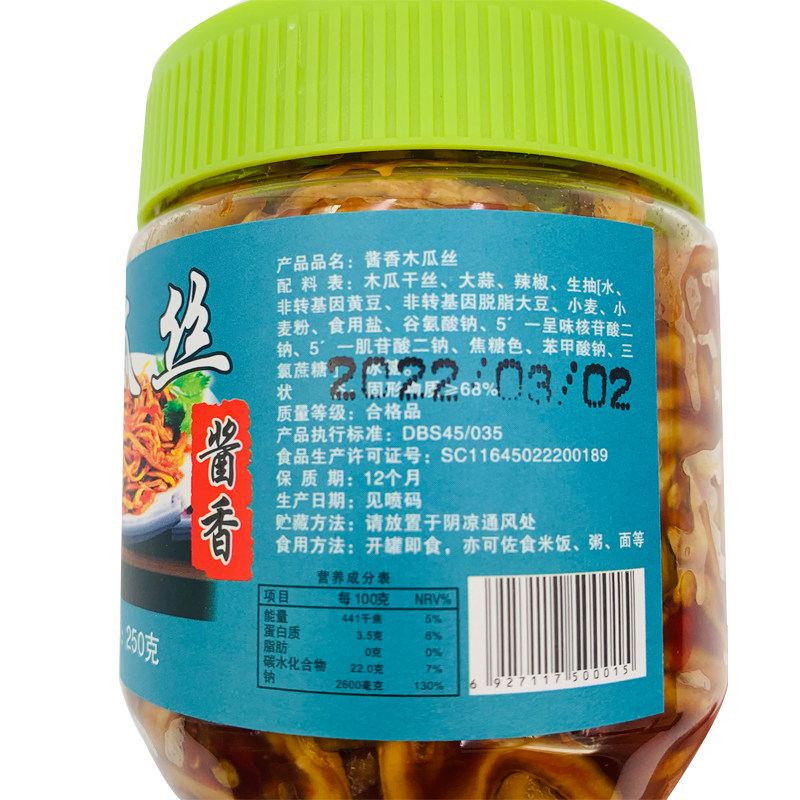 欢姐香辣木瓜丝下饭酱菜250g包邮
